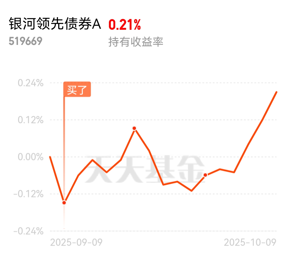 今天勉强也算是股债双收了!低波动的固收+基金银河领先债券A产蛋9个,3连涨!别看