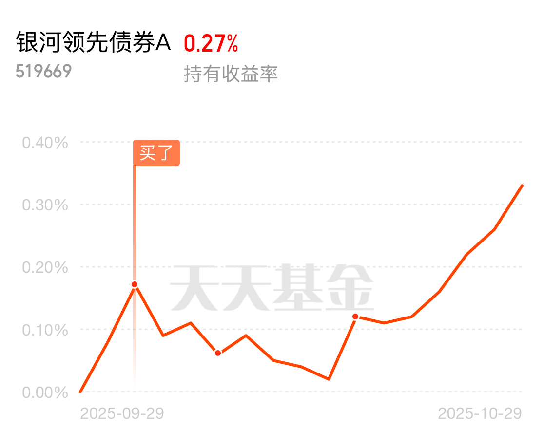 今天债市分化行情,银河领先债券A又产蛋6个,连涨5天了!本来想等一个回调再加,不
