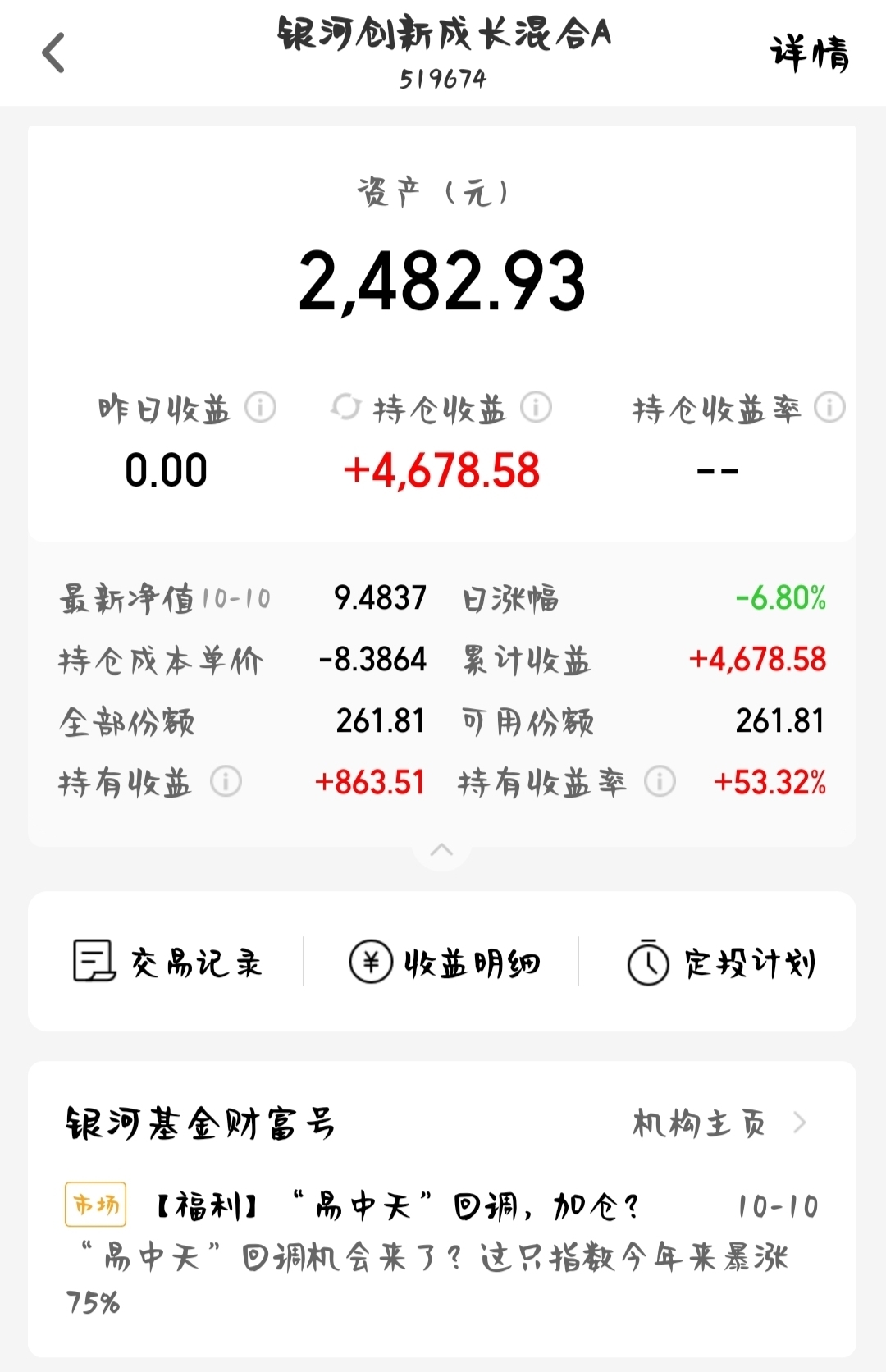 5年了。国庆长假前9.8+又出了一次。唯一保留的老棋,持仓不多,唯一的惊喜。