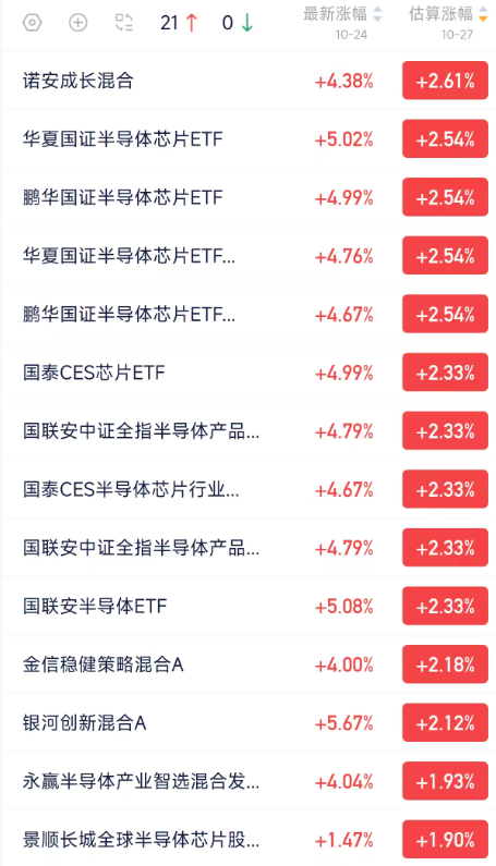 半导体基金估值盘后快报,收益早掌握
