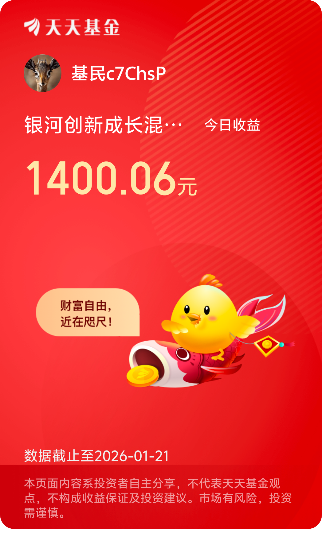 $银河创新成长混合A$ 这基金坚持跟下来,一步步的涨,好旺仔,继续加油,准备减仓