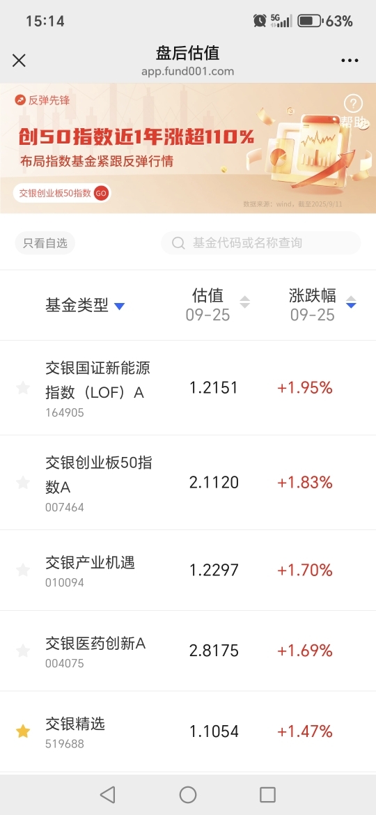 战友们。每天15.15点,微信公众号关注交银官方,有当天涨跌估值。