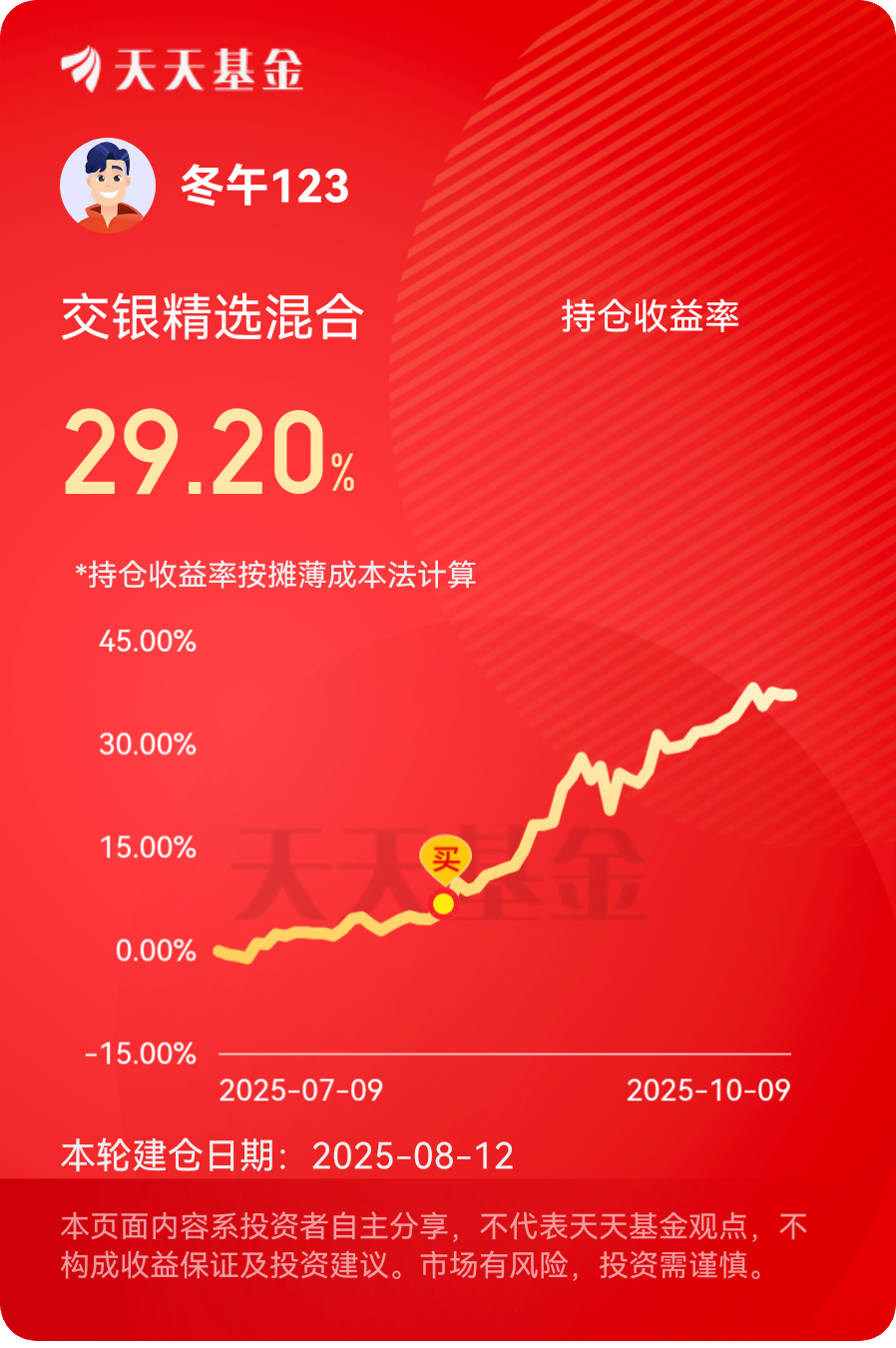 业绩不错,看好经理的布局,一直持有,挺不错的$交银精选混合$ #晒收益#
