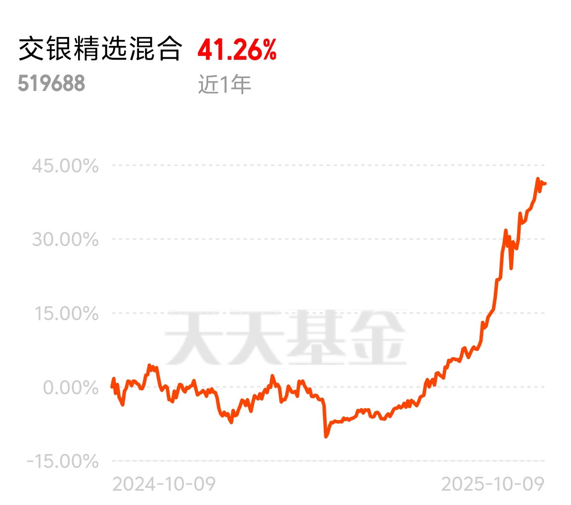 近一年涨41.26%不错啊,还能持续发力,重点关注起来$交银精选混合$