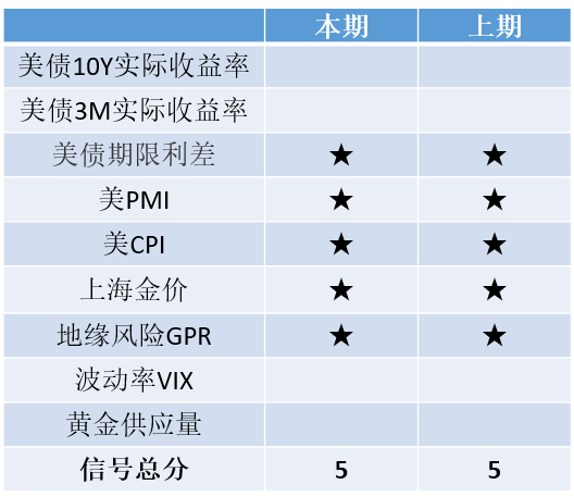 信号说明:交银黄金信号系定量化模型,其分值由9指标综合计算得出,信号分值越高越看好。如果分数<1/3,则看空黄金;如果分数>=2/3,则看多黄金;其余则对黄金观点中性。交银黄金加基金投顾策略根据黄金模型月末信号,定期调仓黄金类资产持仓比例,力争提升黄金投资性价比。