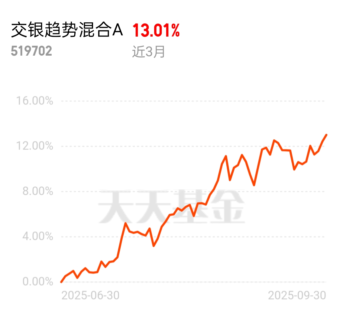 $交银趋势混合A$近三个月上涨13个点,确实不错,先加仓一笔试试