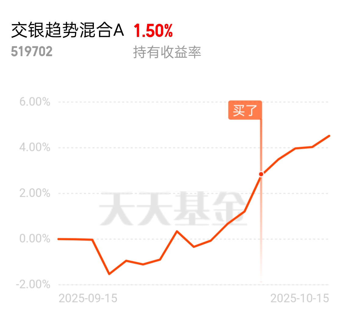 $交银趋势混合A$近一个月上涨4.5,最近连续上涨,就说牛不牛吧?