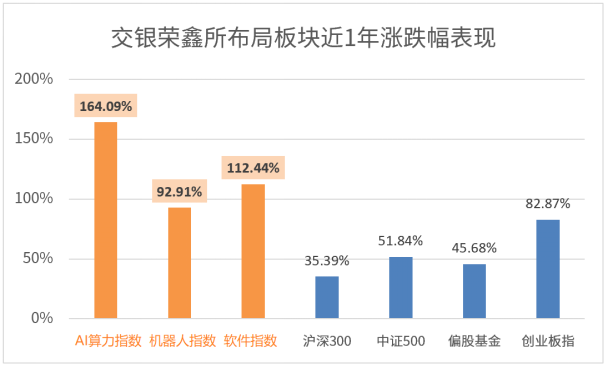 交银荣鑫在科技成长股方面主要布局了AI算力、机器人、软件传媒、半导体等细分板块,这些板块在政策支持和产业周期共振下表现突出。截至2025年8月31日,这些板块近一年涨幅显著优于主流宽基指数。
