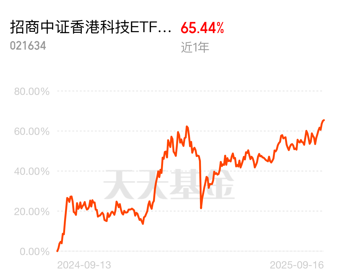 最近港股科技板块挺景气,百度、中芯国际、阿里今天涨得挺好。招商香港科技 C 近一年涨 65.44%,AI 覆盖比恒科全,还抓中小科技股成长,比港股通互联网好,当前位置正好,上车不犹豫。
