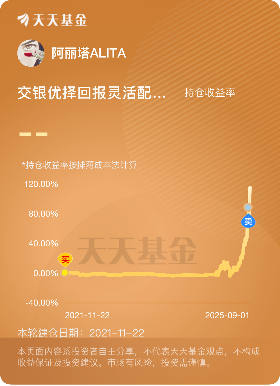 两个姐姐,牛逼,爱你们,从21年拿到现在,前几日恐高减了些仓$交银优择回报灵活配