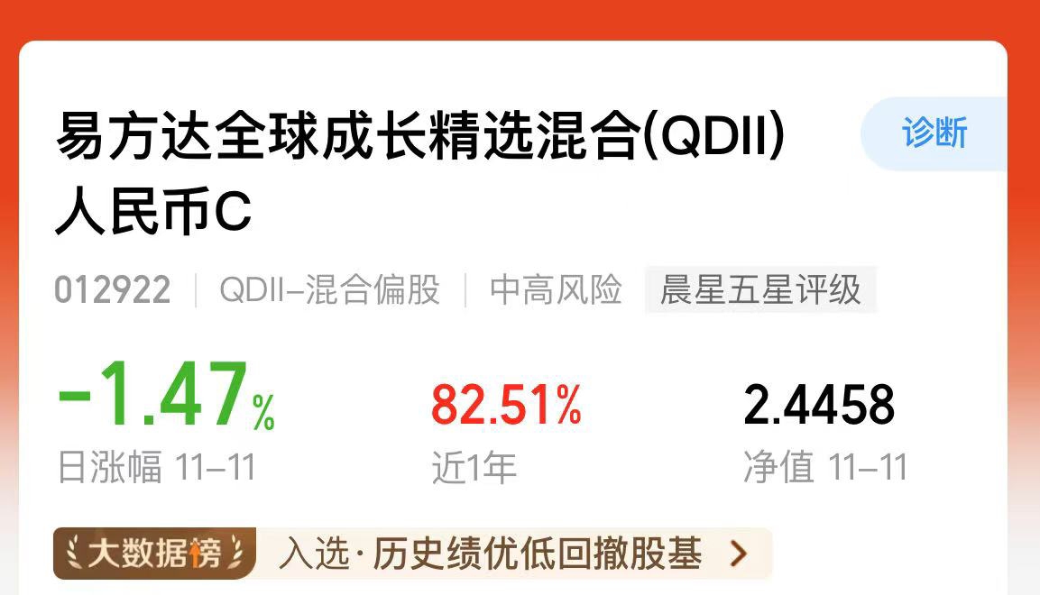 市场起起落落看得人头晕,心态好几次都要崩了,还好无意间刷到易方达全球成长精选混合。这只基金真稀缺,稳居绩优低回撤榜单首位,涨的时候能跟上节奏,跌的时候还抗造。不盯着单一市场,在A股、港股、美股之间灵活调仓,科技方向更是精准拿捏,每个季度热门风口都没错过,基金经理实力在线,长期持有完全不用慌!