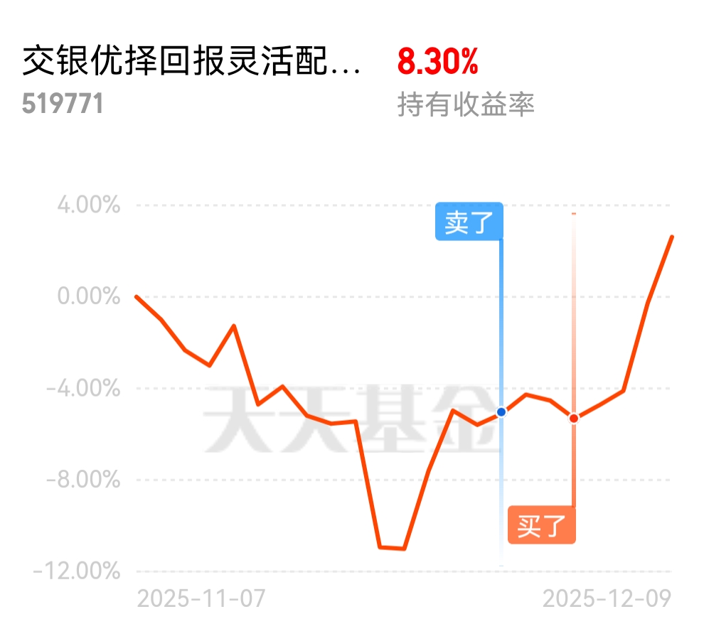 业绩不错,这只基金近一年、近六月收益能打,基本面没坏,耐心持有。$交银优择回报灵