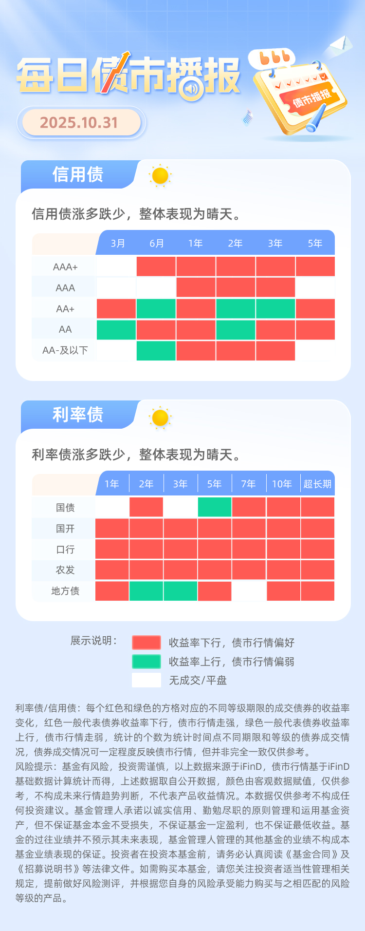 10月31日债市播报:信用债晴天,利率债晴天
