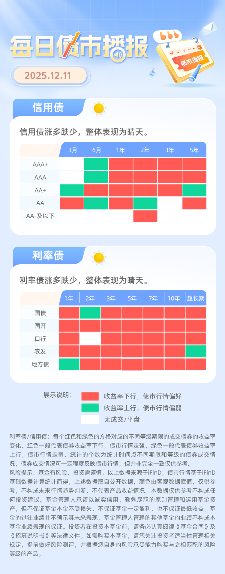 12月11日债市播报:信用债晴天,利率债晴天