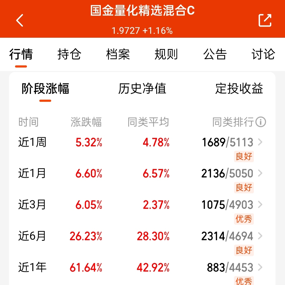 最近的量化基天天吃肉,还好节前+了不少$国金量化精选混合C$ ,限额放开了就是好操作,和量化多因子同策略的
