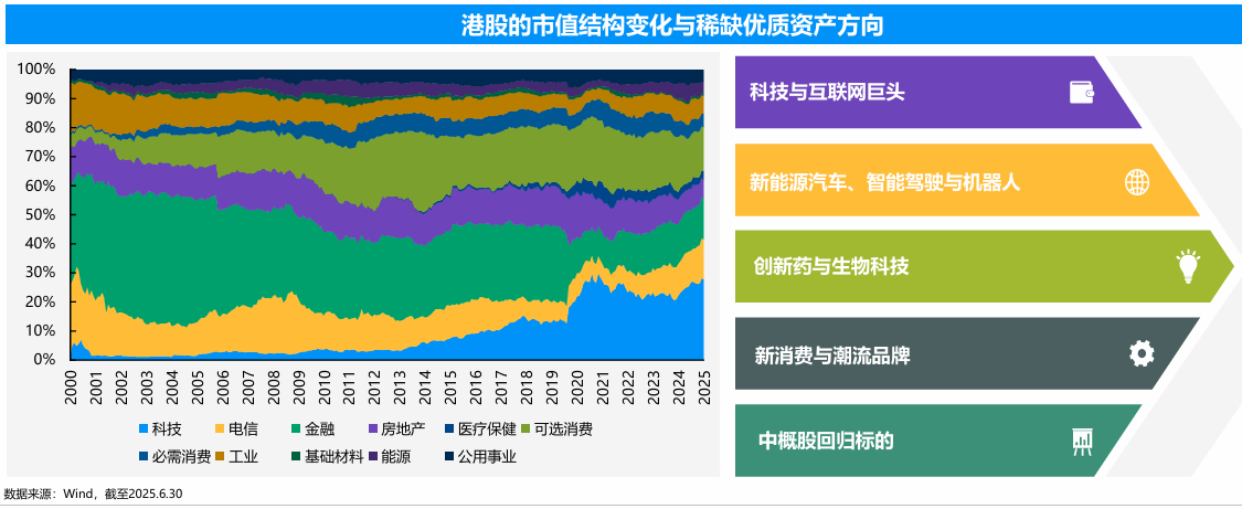 两个现象的背后是港股的市值结构变化,港股已经越来越成为AI、新能源、机器人、创新药、新消费的聚集地!而在当下科技牛的结构性行情中,把握住科技主线,就能把握住主要行情!