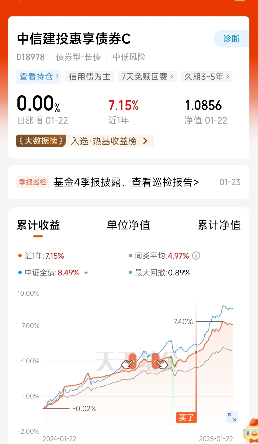 年化过七个点的债基,中信建投惠享这里中长期业绩做的不错,所以我准备持债过节啦#长期资金入市明确硬指标,大金融起舞#
