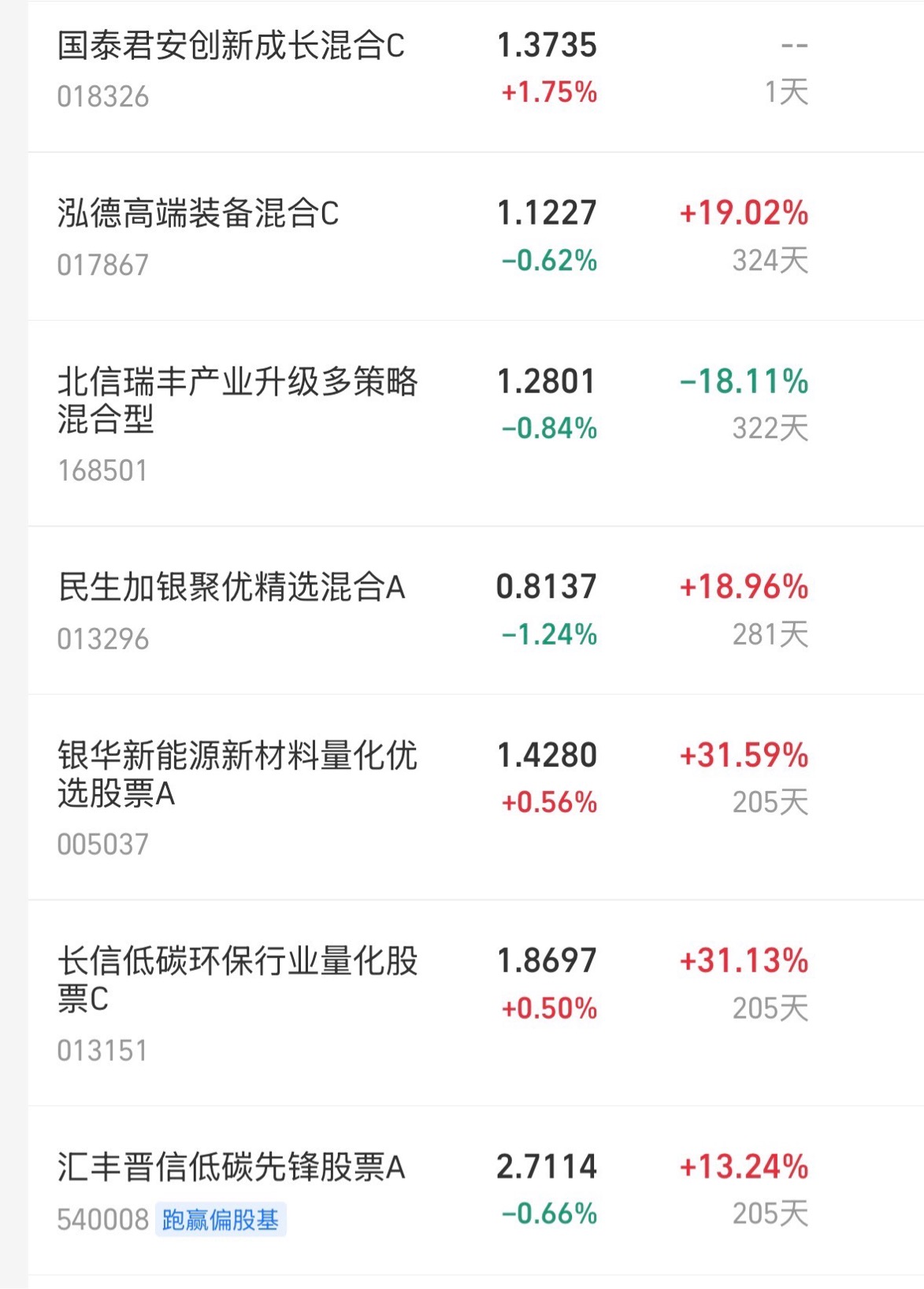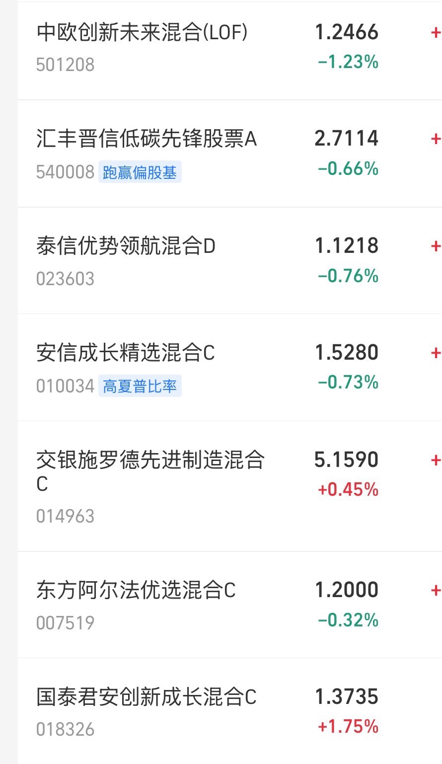 $泰信优势领航混合D$ 下跌0.76%$安信成长精选混合C$ 下跌0.73%$国泰君安创新成长混合发起C$ 上涨1.75%