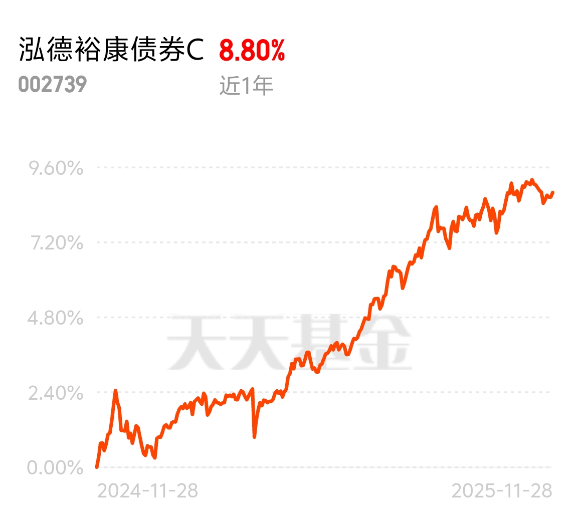 泓德裕康002739今天继续收14个蛋近一年涨了8.8%,定位中风险还能有这么稳