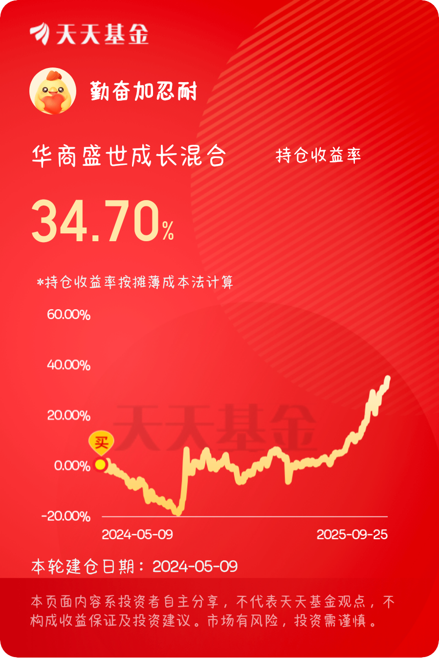 年收益超100个点了,这都翻倍了吧,还是拿长期比较好,多点耐心吧$华商盛世成长混
