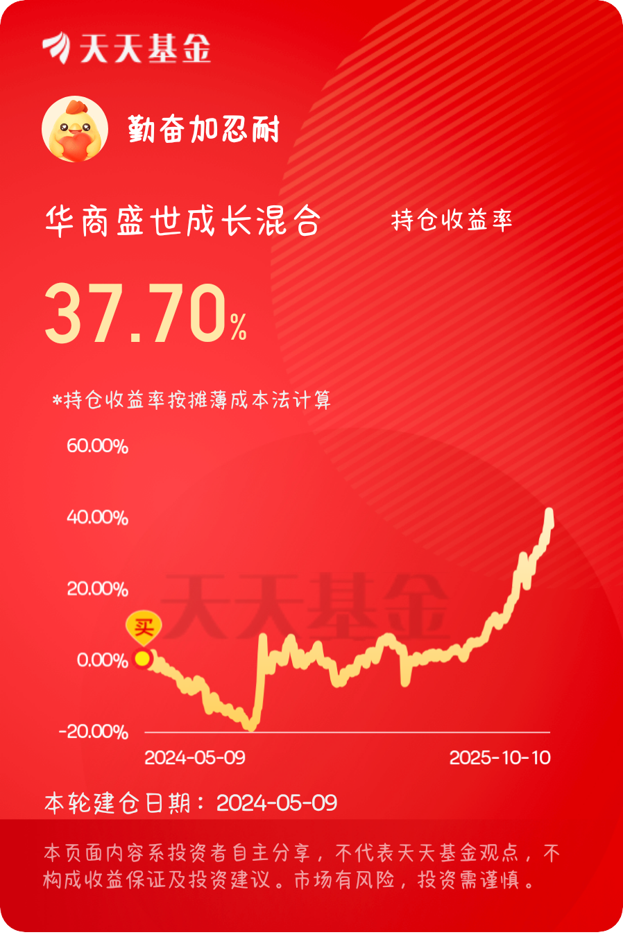 聚焦资源、消费等优势行业,收益弹性比较大,我就拿稳等涨了$华商盛世成长混合$ #晒收益#
