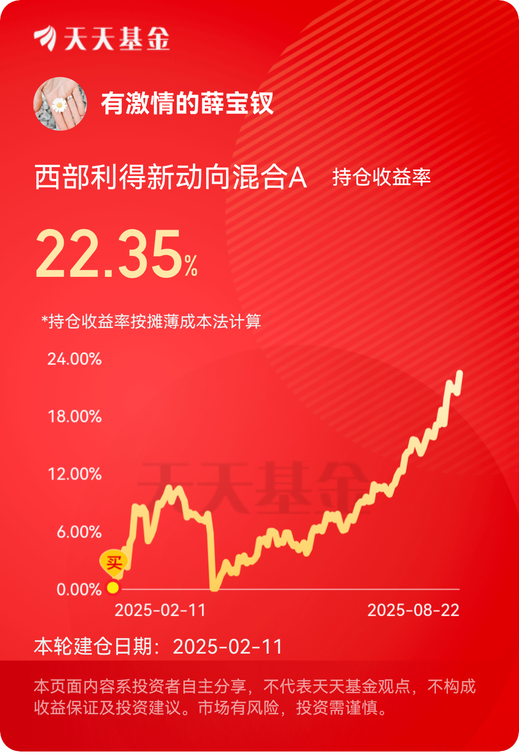 晒晒收益,我不想上串下跳,这个基让我持有感受很不错,无压持有!$西部利得新动向混合A$ #晒收益#