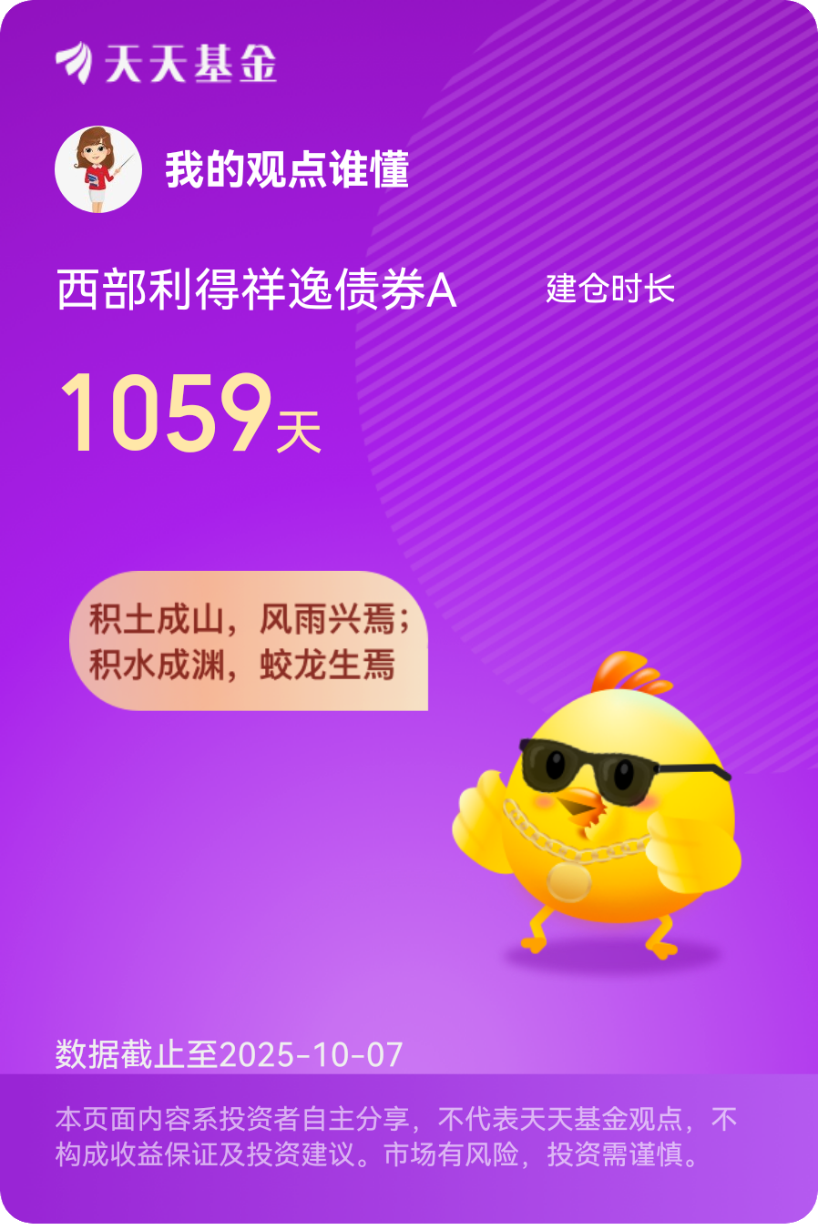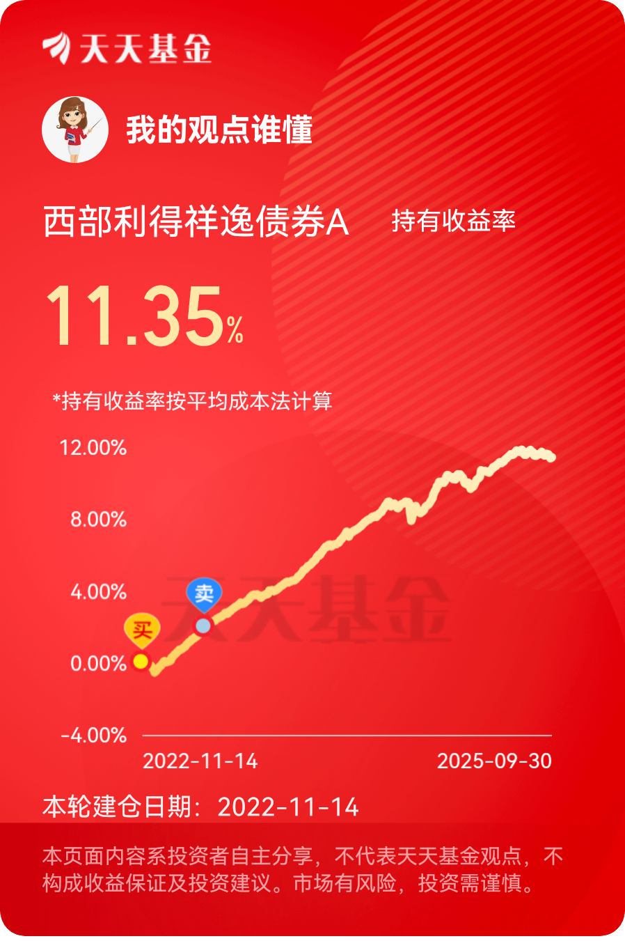 所以目前的债券类资产是适合逐步建仓的。而我提前布局了西部利得祥逸债券A(675091),因为成绩是硬道理,它在最近三年的投资收益率为11.70%(排名同类基金产品的214/2192),所以它就是很多投资者心目中的宝藏基金,我相信它在未来的表现会大放异彩的。@西部利得基金