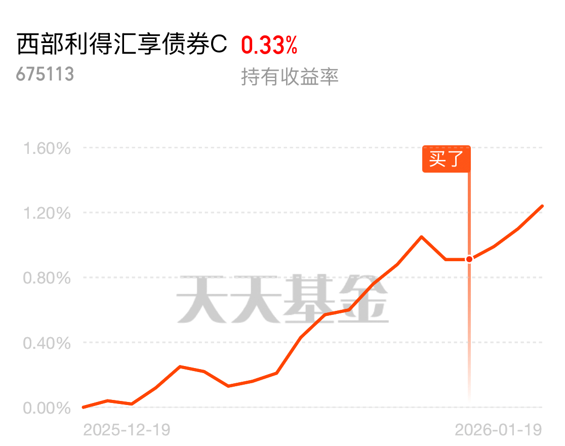 债市有红有绿,固收+基金还是很香的!低波固收+基金西部利得汇享债券C今天继续爆蛋