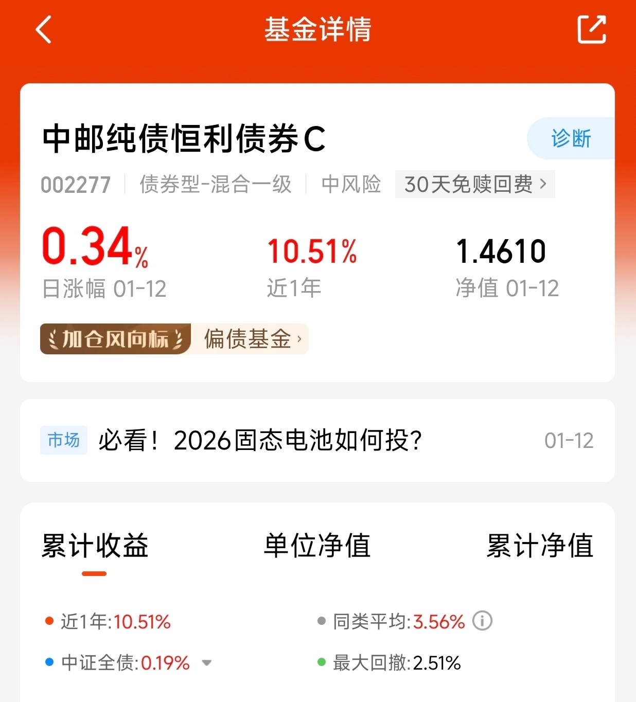 震荡行情,还是配置混债吧,$中邮纯债恒利债券C$主投可转债和纯债,没有股票,低费