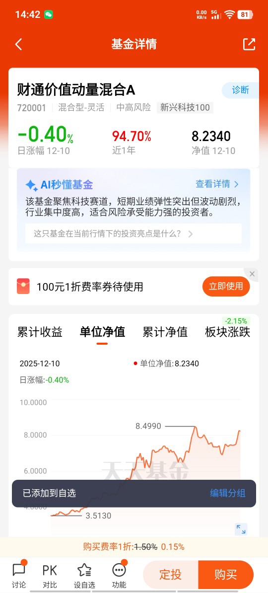 对普通投资者来说,想参与AI的长期机会,又怕踩中那些蹭概念的泡沫股,$财通价值动量混合A$$财通价值动量混合C$ 就是个不错的选择。这款基金聚焦科技赛道,投资逻辑从不是盲目追逐AI热点,而是锚定有实际技术落地、有业务营收支撑的科技标的,能通过专业的筛选机制避开纯蹭概念的泡沫标的;同时它属于中高风险的混合型灵活基金,仓位调整具备灵活性,既能贴合AI革命的长期发展方向,也能在板块出现短期波动时做出适配调整,很适合风险承受能力较强、想长期布局科技赛道的投资者。