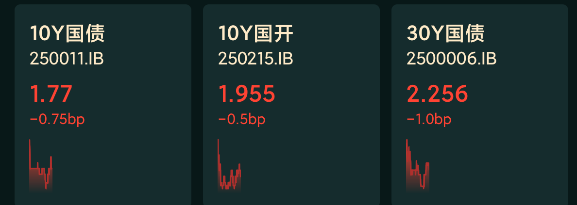 十年期国债收益率:1.77%,-0.75BP(国债收益率越跌,债市越涨)