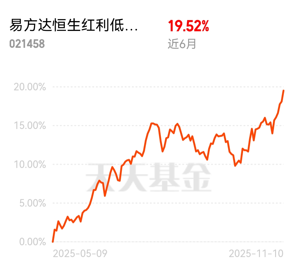 行情持续在线!易方达恒生红利低波 C连涨六天,今晚大涨 1.19%,今年来累计 24.75%!现在位置正合适,继续上车不踩空,跟着稳涨基金准没错!