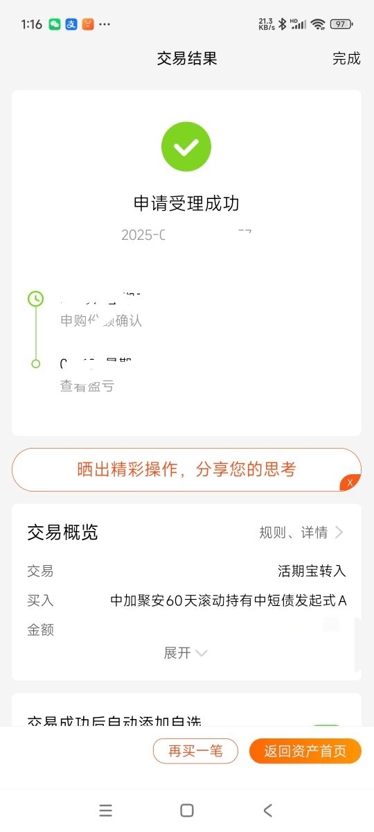 稳健理财中短债还是很有性价比的,波动小,流动性好,长期收益也稳定,我买的$中加聚安60天滚动持有中短债发起式A$ 半年下来有240多个蛋了,这基各阶段业绩都优秀,费率还低