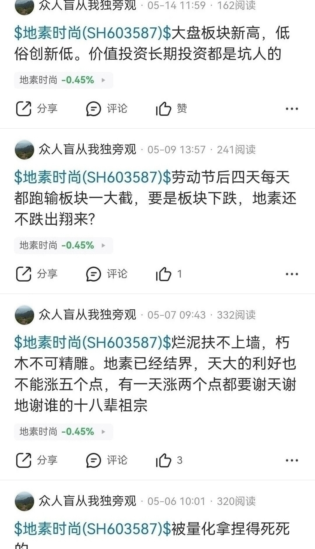 $华瑞服装(OTCBB|EVKG)$ $地素时尚(SH603587)$ 季线大底中长线至少几倍涨幅,服装板块涨幅百分之八十左右,地素涨幅百分之三十左右落后服装板块百分之五十左右有补涨需求,卖在季线底部十元左右唱空攻击人的资金北向资金入场大涨开启,扩内需提振消费再通胀预期,服装股牛市,服装板块突破今年六月高点,地素还没突破今年六月高点15.22,短线就会补涨突破