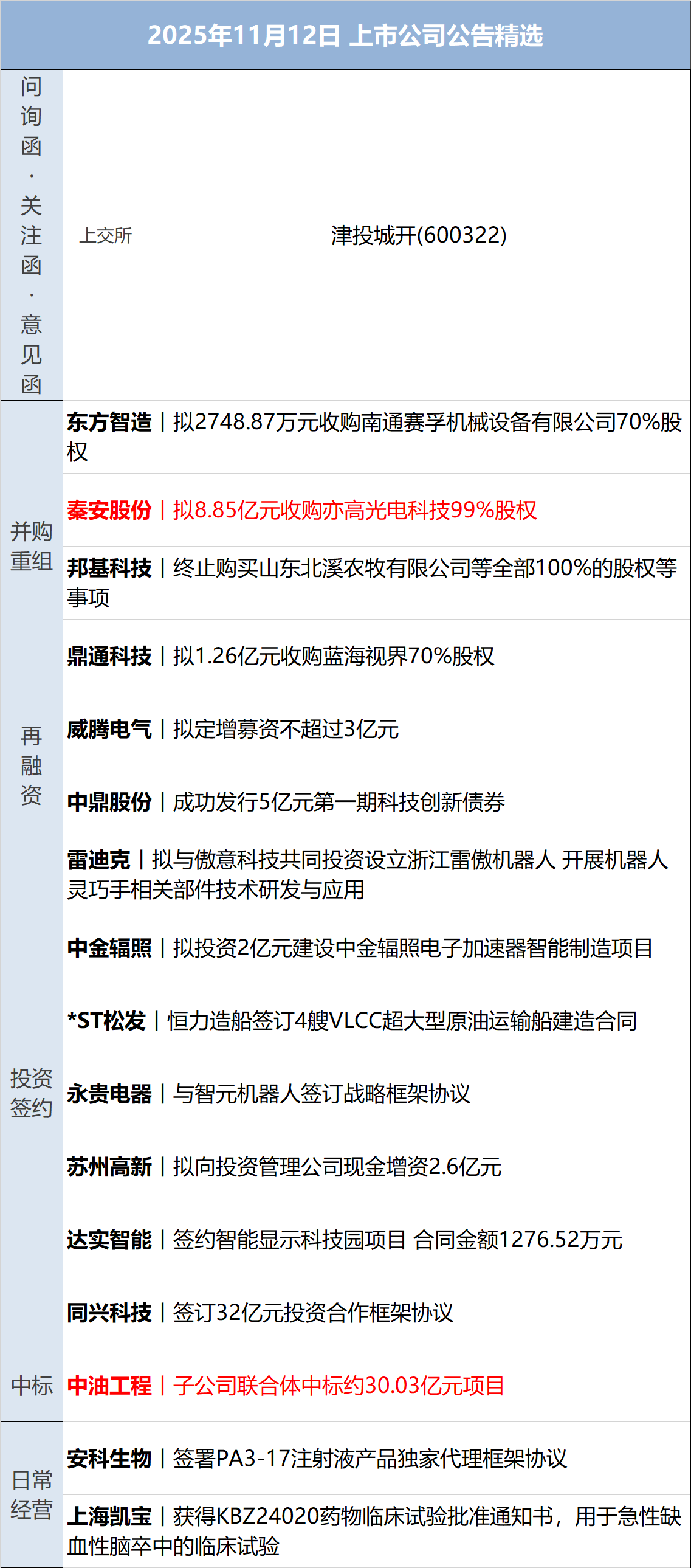 上纬新材(SH688585,股价130.20元,市值525.18亿元):11月11日晚,上纬新材公告称,公司股票自2025年7月9日至11月11日累计上涨1573.52%,短期涨幅显著高于相关指数涨幅,存在随时快速下跌的风险。公司于近期开展的具身智能机器人业务处于产品开发阶段,尚未实现量产及规模化销售,相关业务尚未形成营收及利润,预计不会对2025 年度业绩产生正向影响。公司与关联方各自独立开展具身智能机器人业务,应用场景不同,确保与关联方不构成重大不利影响的实质同业竞争。