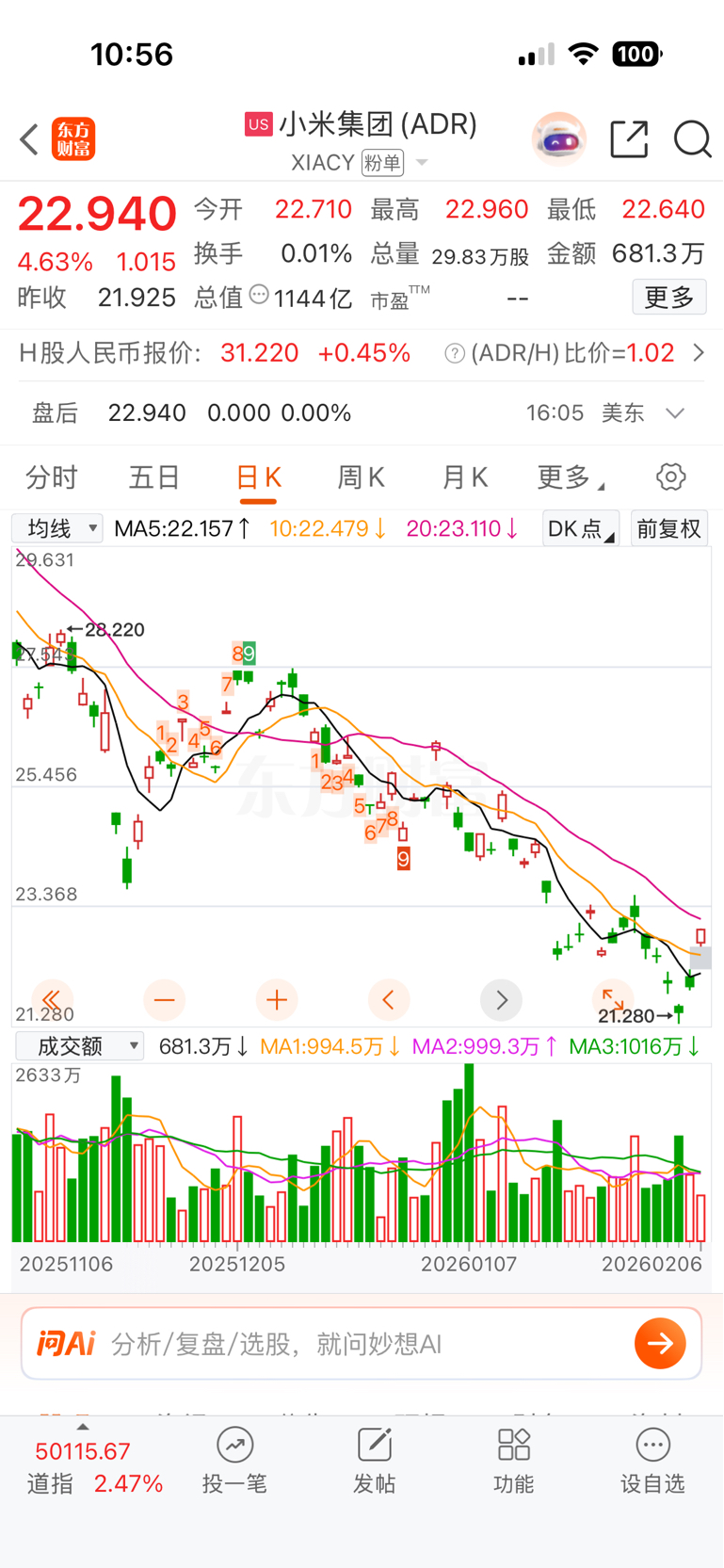 小米ADR昨↑4.6%,35→8→61→33,...?