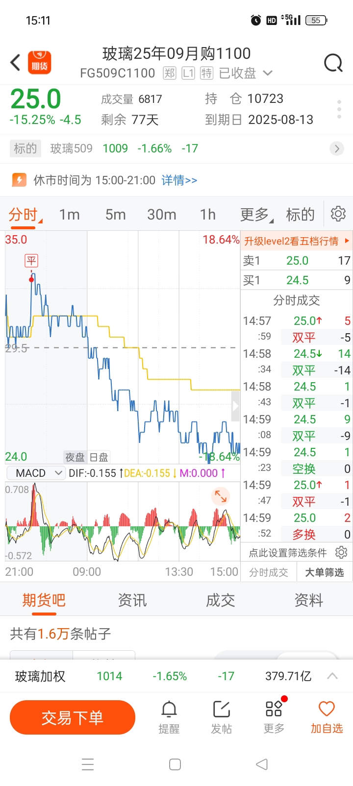 下午没时间看盘,晚上继续进布局买购玻璃期权。。。。。被多头偷袭了纸浆