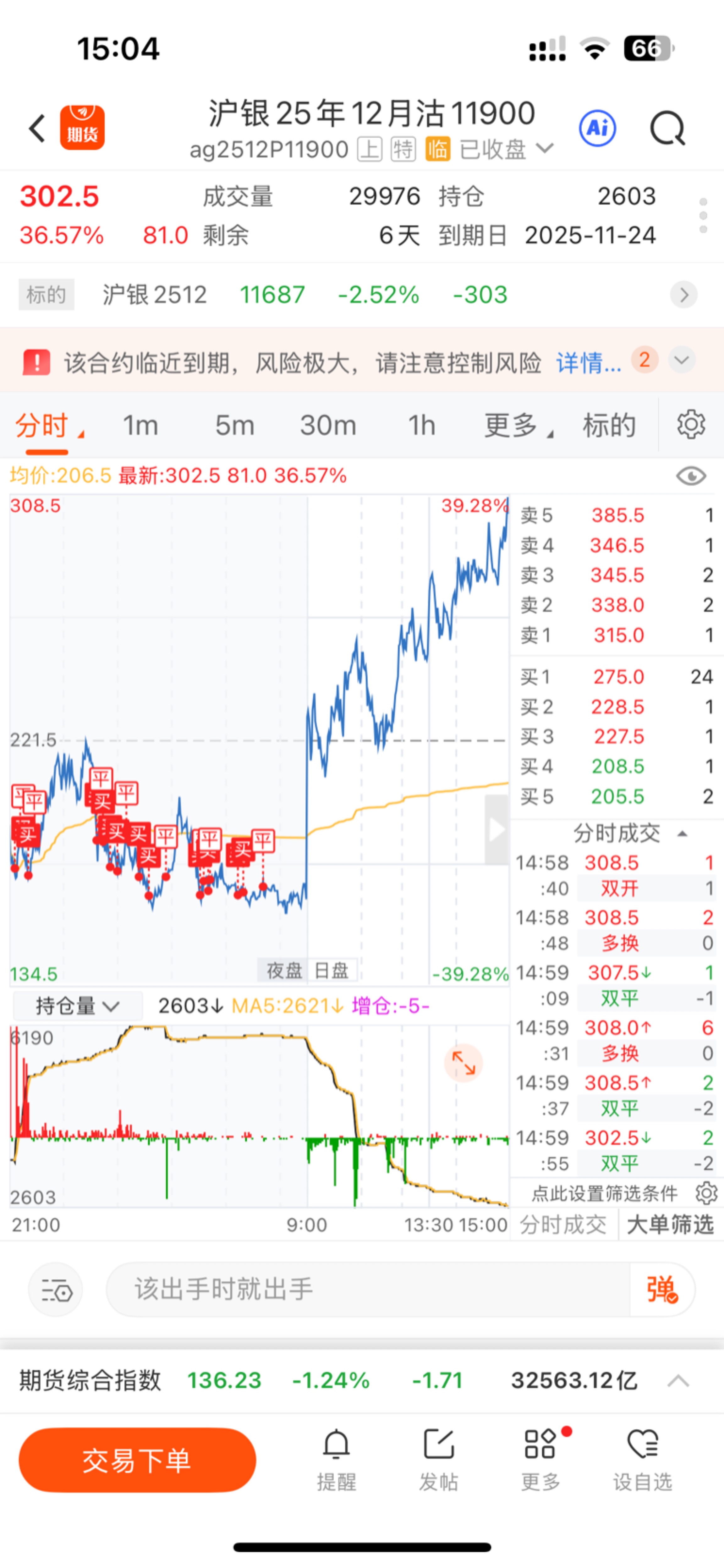$沪银25年12月沽11900(SHFEOPTION|ag2512P11900)$ 前几天和晚上没怎么涨敢买,白天一路涨却不敢买了