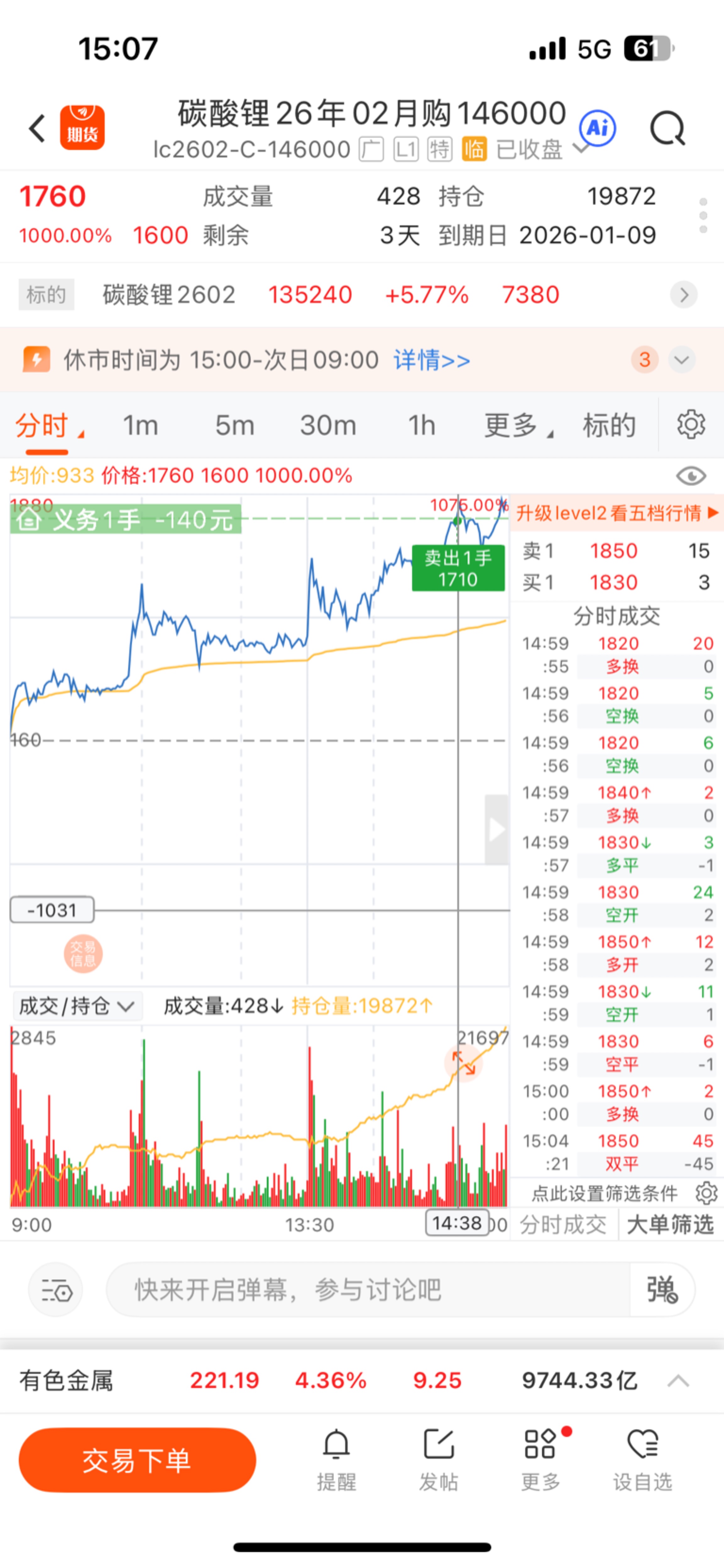 三天146000?我就吃个1000多块钱,不过分吧$碳酸锂26年02月购146000(GFEXOPTION|lc2602-C-146000)$