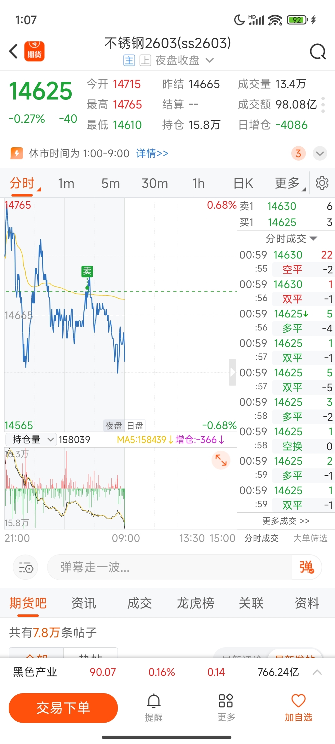 完蛋了今晚不想做期权跑去买了点不锈钢就玩手机去了,把有色忘记了一单末日单都没下唉