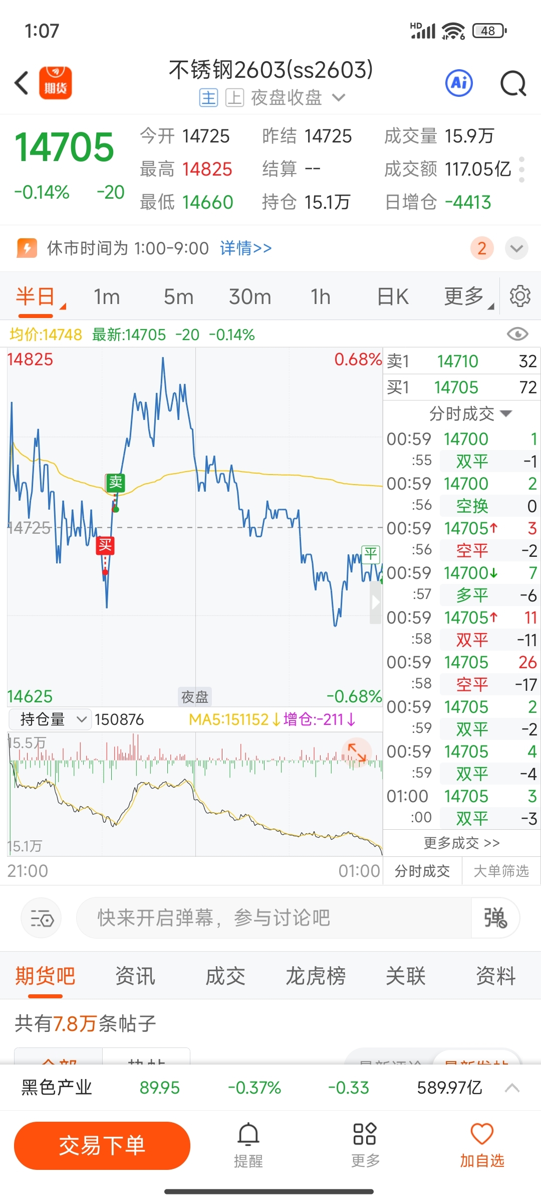 每次夜盘降波都去不锈钢下点单快收盘就平,做多两次才发现原来做期货要比期权简单轻松很多