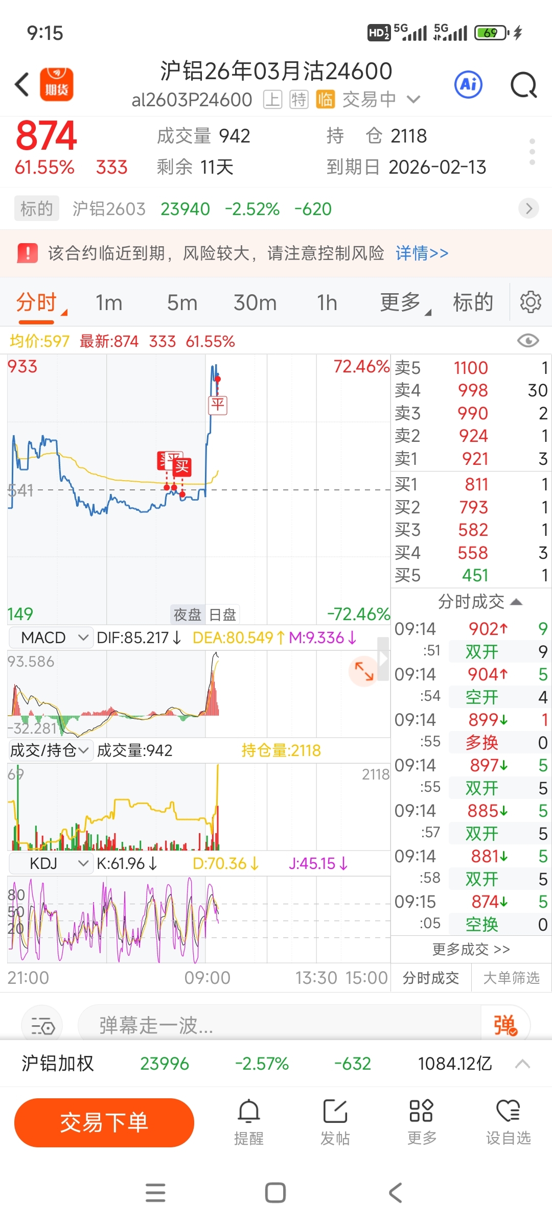$沪铝26年03月沽24600(SHFEOPTION|al2603P24600)$ 收工,黄金白银都不如到口袋里的真金