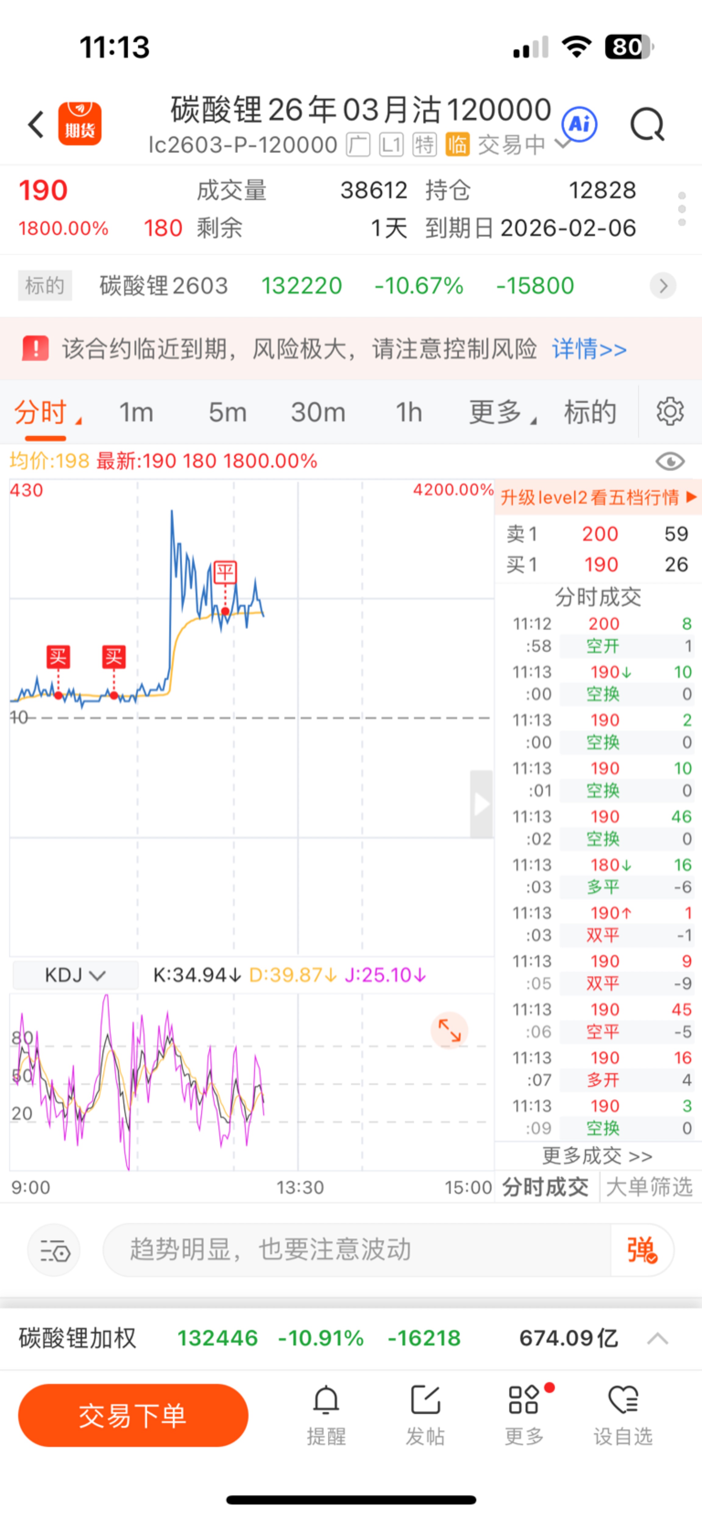 $碳酸锂26年03月沽120000(GFEXOPTION|lc2603-P-120000)$ 翻了五倍走了,就算今天主力合约跌停,主力也不会让03跌停了,不跌停扩不了板,明天就算跌停03也到不了120000了。