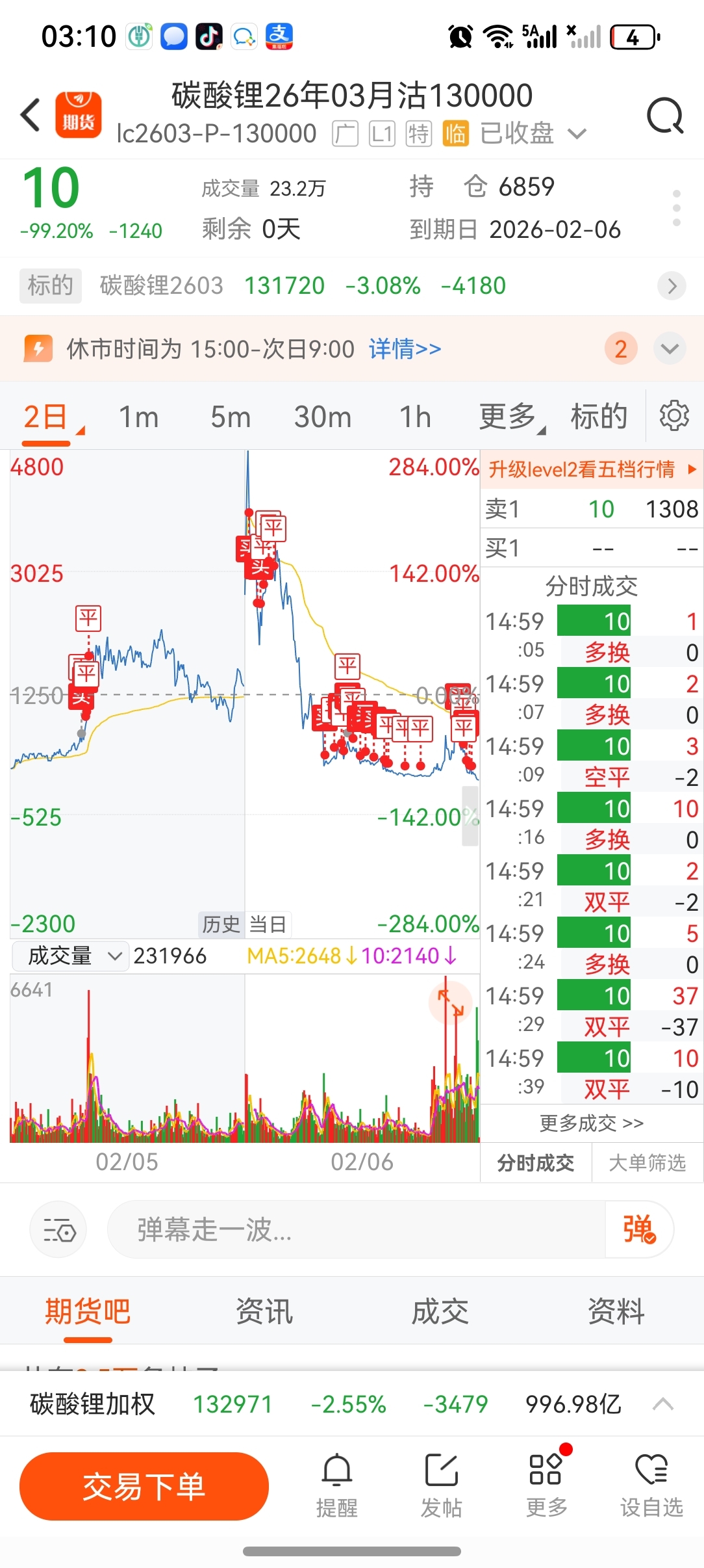 碳酸锂本周四大跌。周四尾盘我买的是1000成本左右的虚跌权。周五早盘开盘5000出的。实际利润拿到3倍左右。我看开盘后跌权负溢价20多个点。估计要涨。