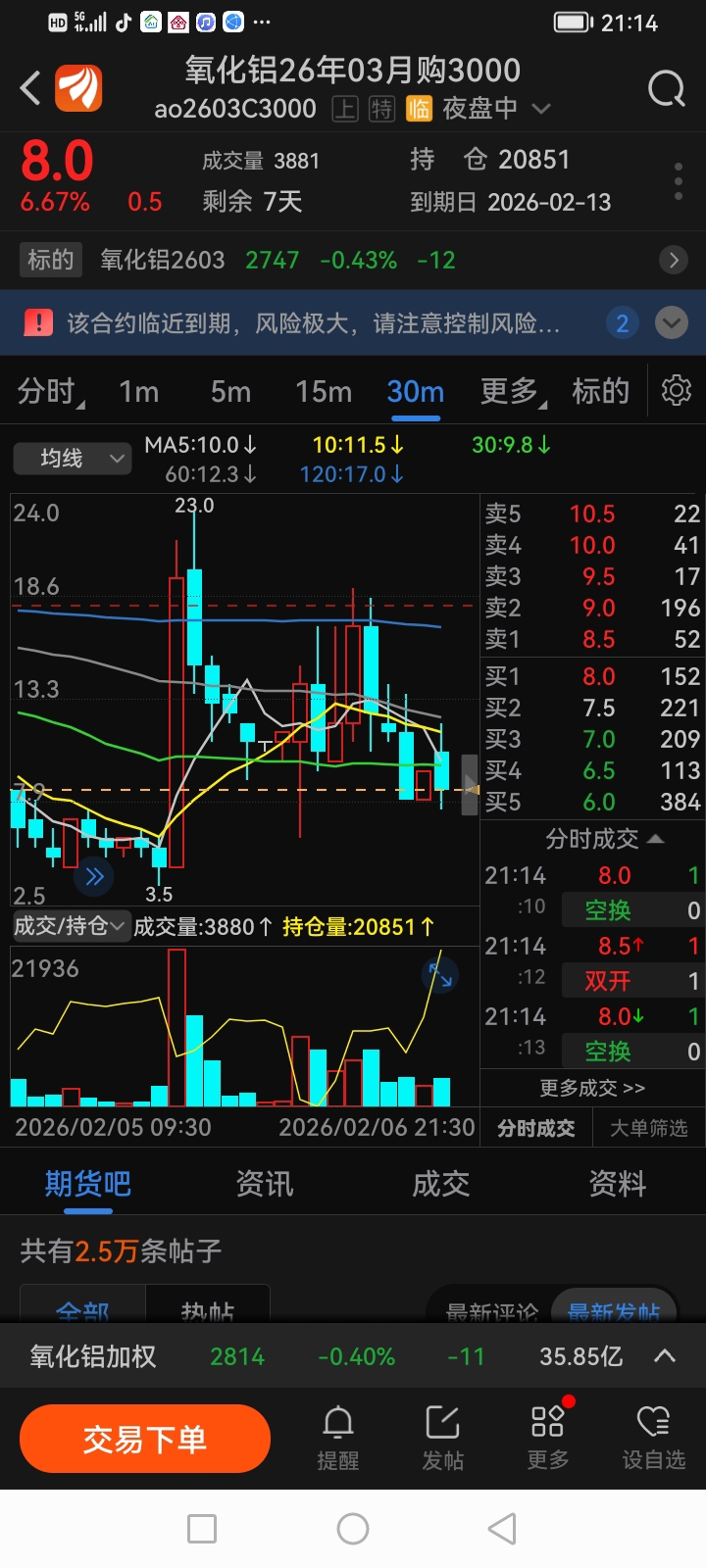 氧化铝购3000持仓大福增加应该大机构要干