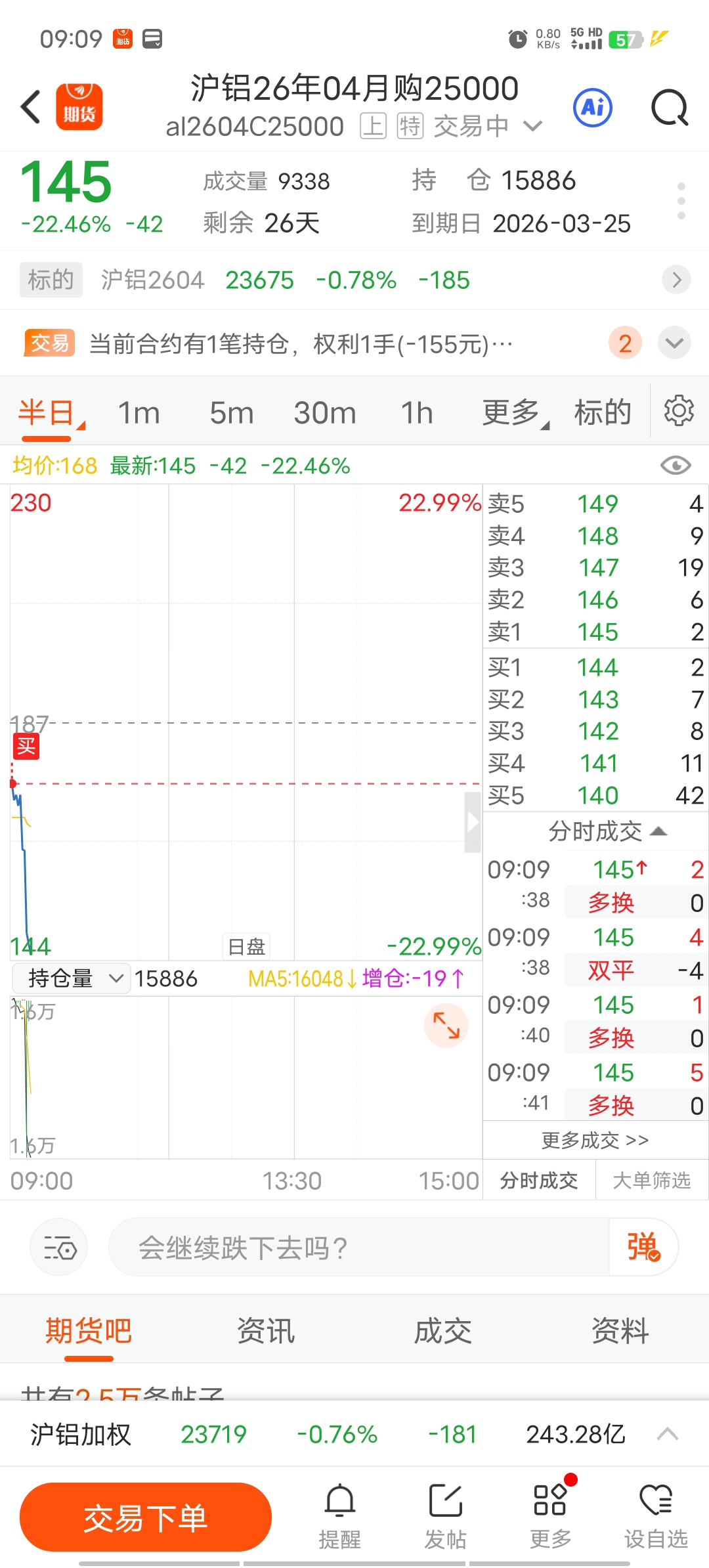 早上只不过买了一手沪铝购权,感觉沪铝要蹦了
