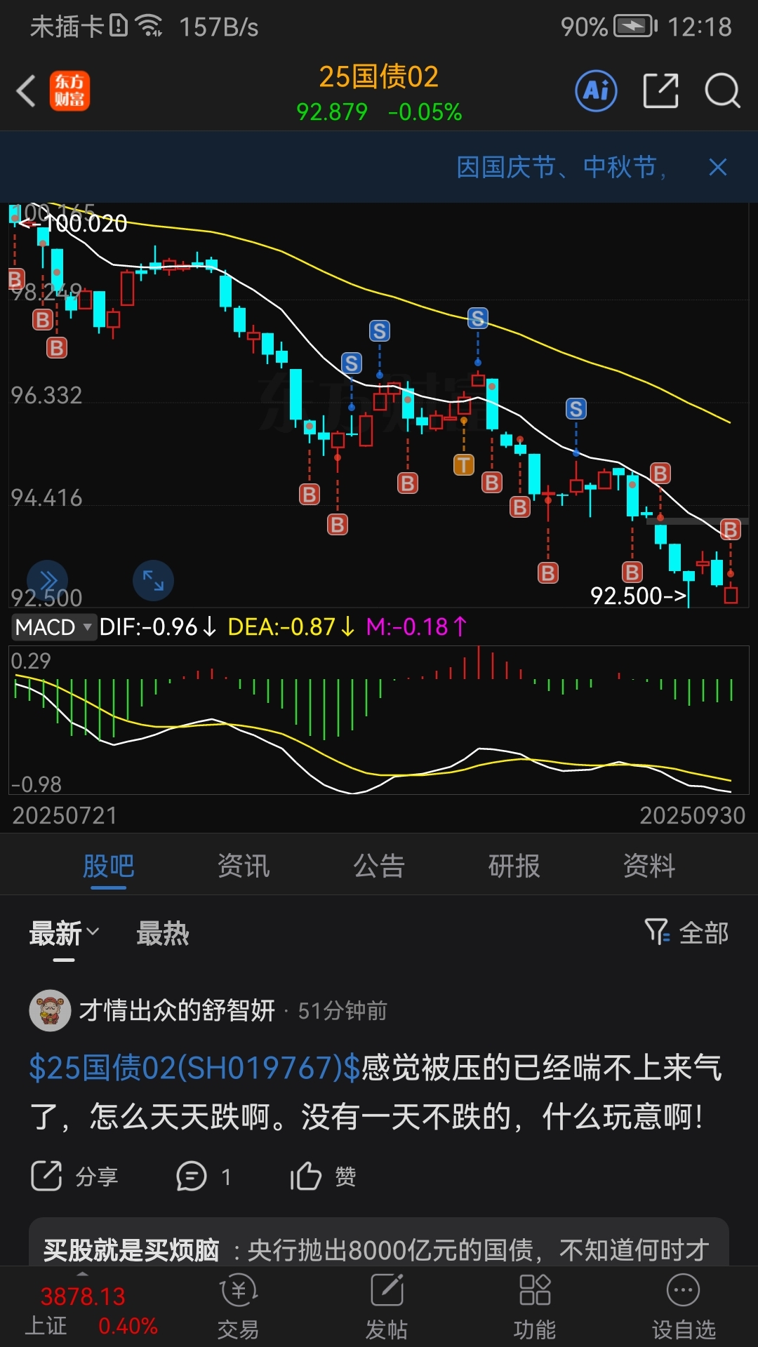 $25国债02(SH019767)$ 第十二单,你可千万别涨。工行大额换你不香吗。