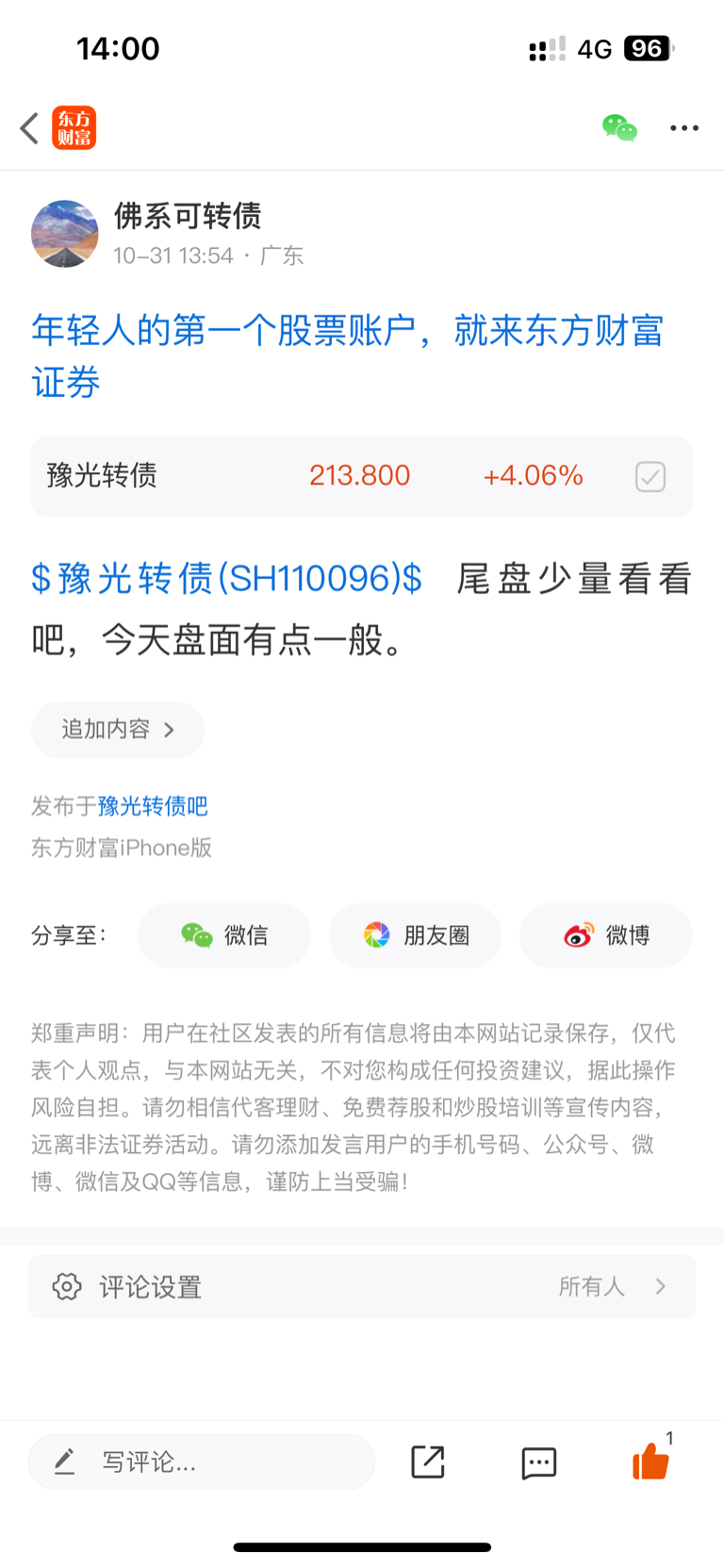 温馨提示: 1.根据《证券法》规定,禁止编造、传播虚假信息或者误导性信息,扰乱证券市场;2.用户在本社区发表的所有资料、言论等仅代表个人观点,与本网站立场无关,不对您构成任何投资建议。用户应基于自己的独立判断,自行决定证券投资并承担相应风险。《东方财富社区管理规定》