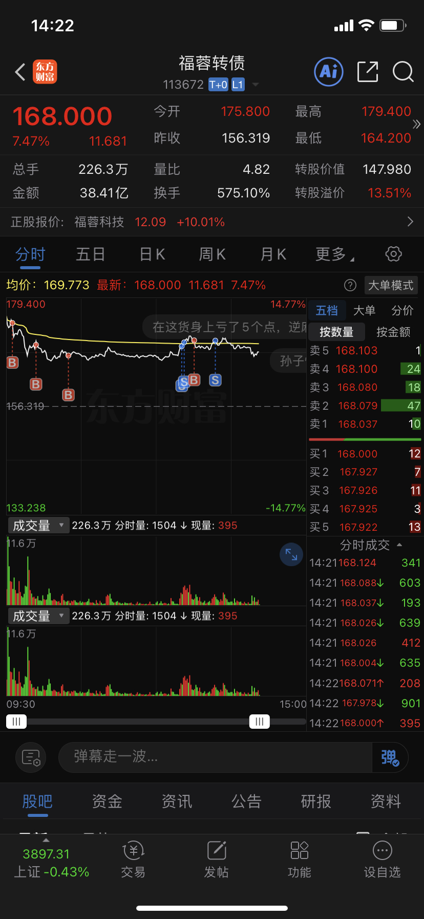 $福蓉转债(SH113672)$ 挣了30走了。还以为涨停呢……
