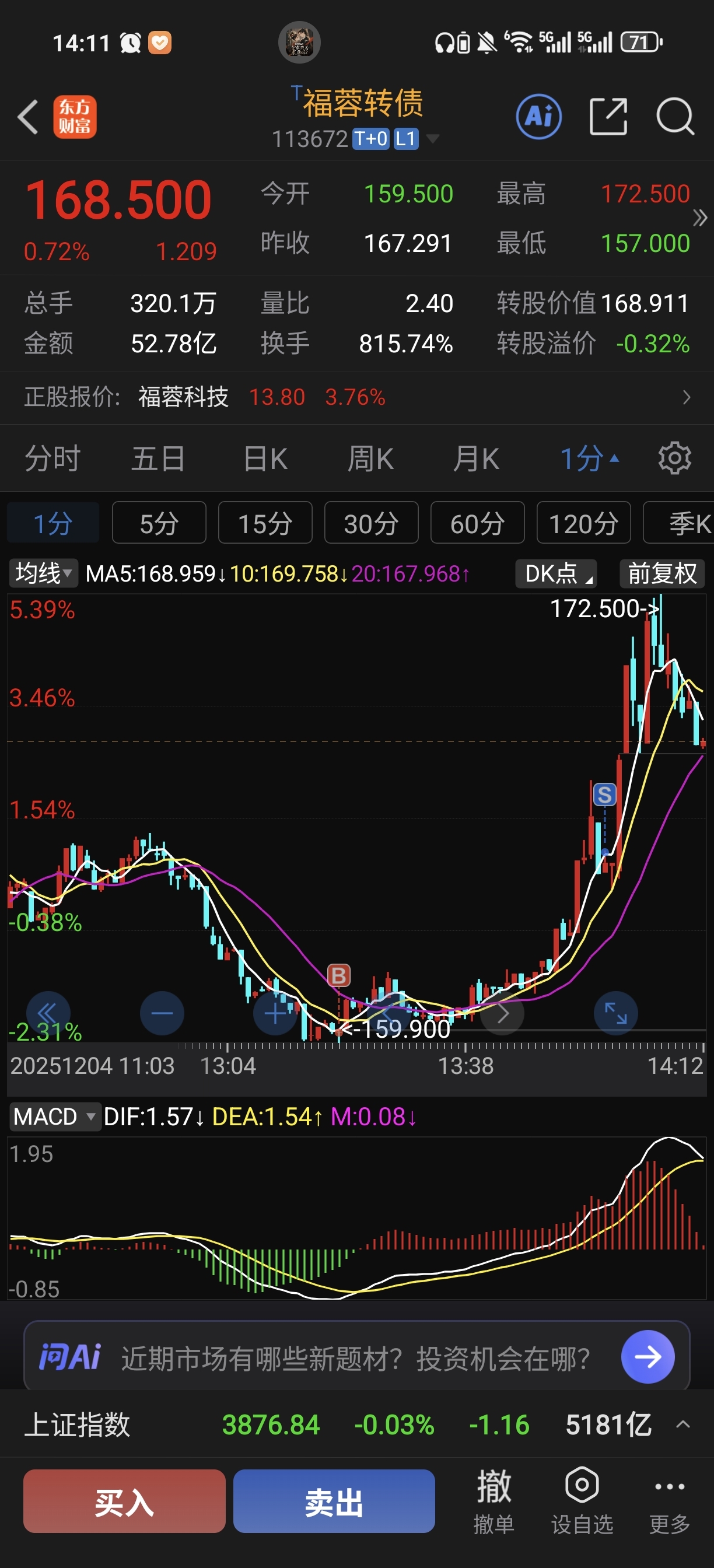 $福蓉转债(SH113672)$ 一放量就会被吓跑,总是卖飞,求大神告知怎么找卖点?